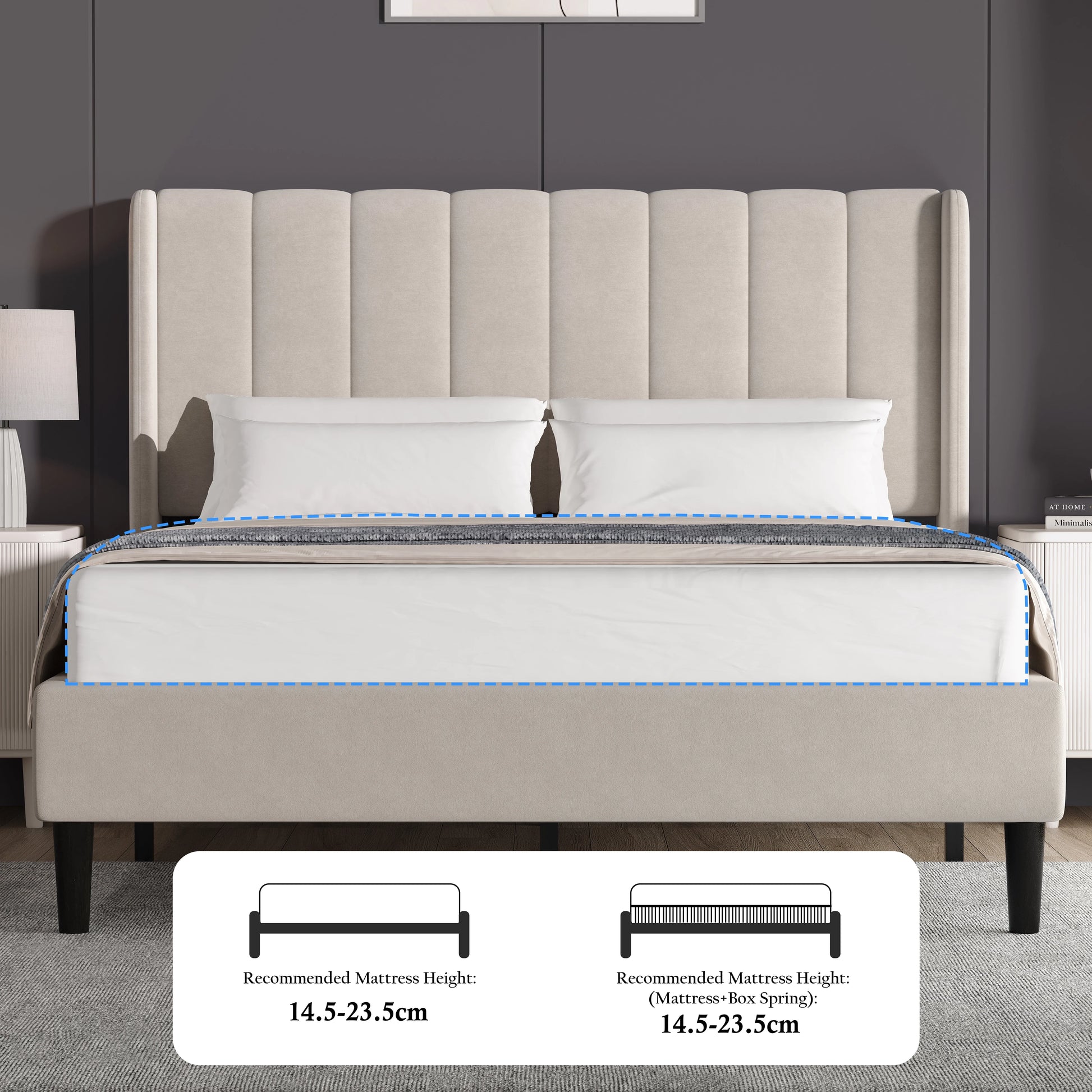 Vertical Line Velvet Upholstered Bed Frame Double &...