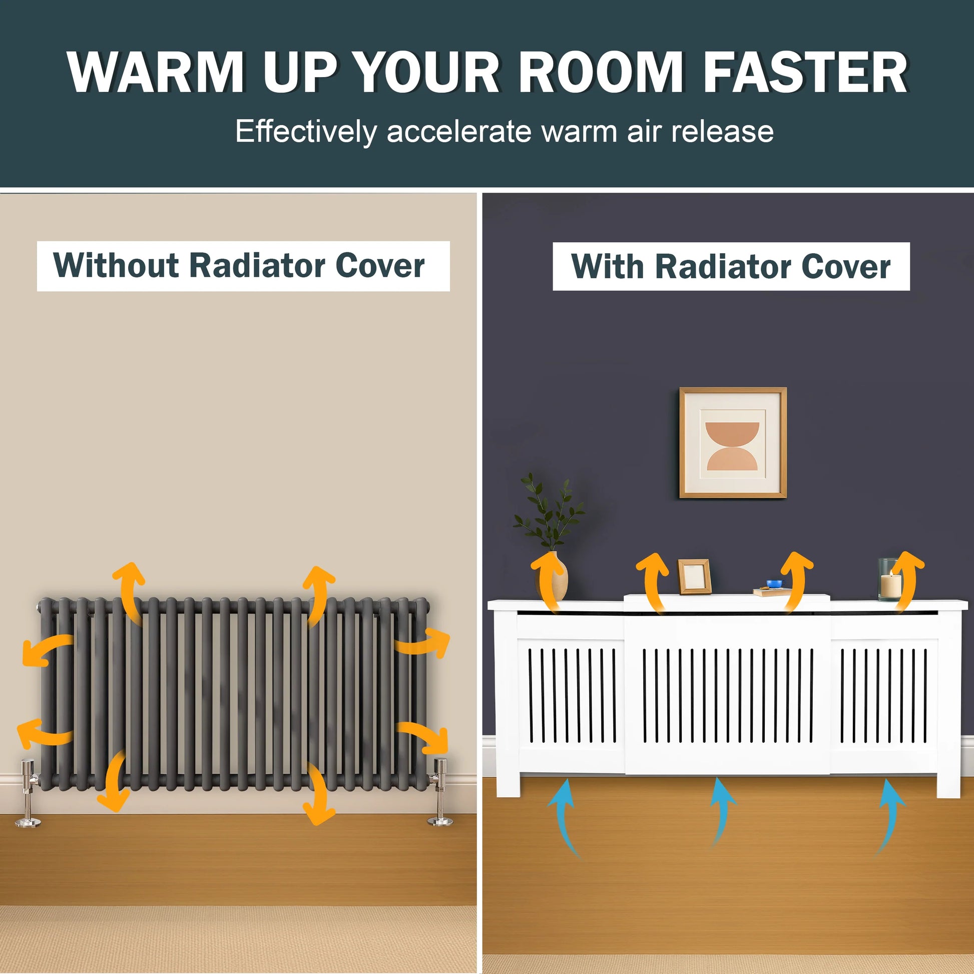 Crafted from medium density fiberboard (MDF), this adjustable radiator cover comes with a unique adjustable design that adapts to various sizes while enhancing the aesthetics.