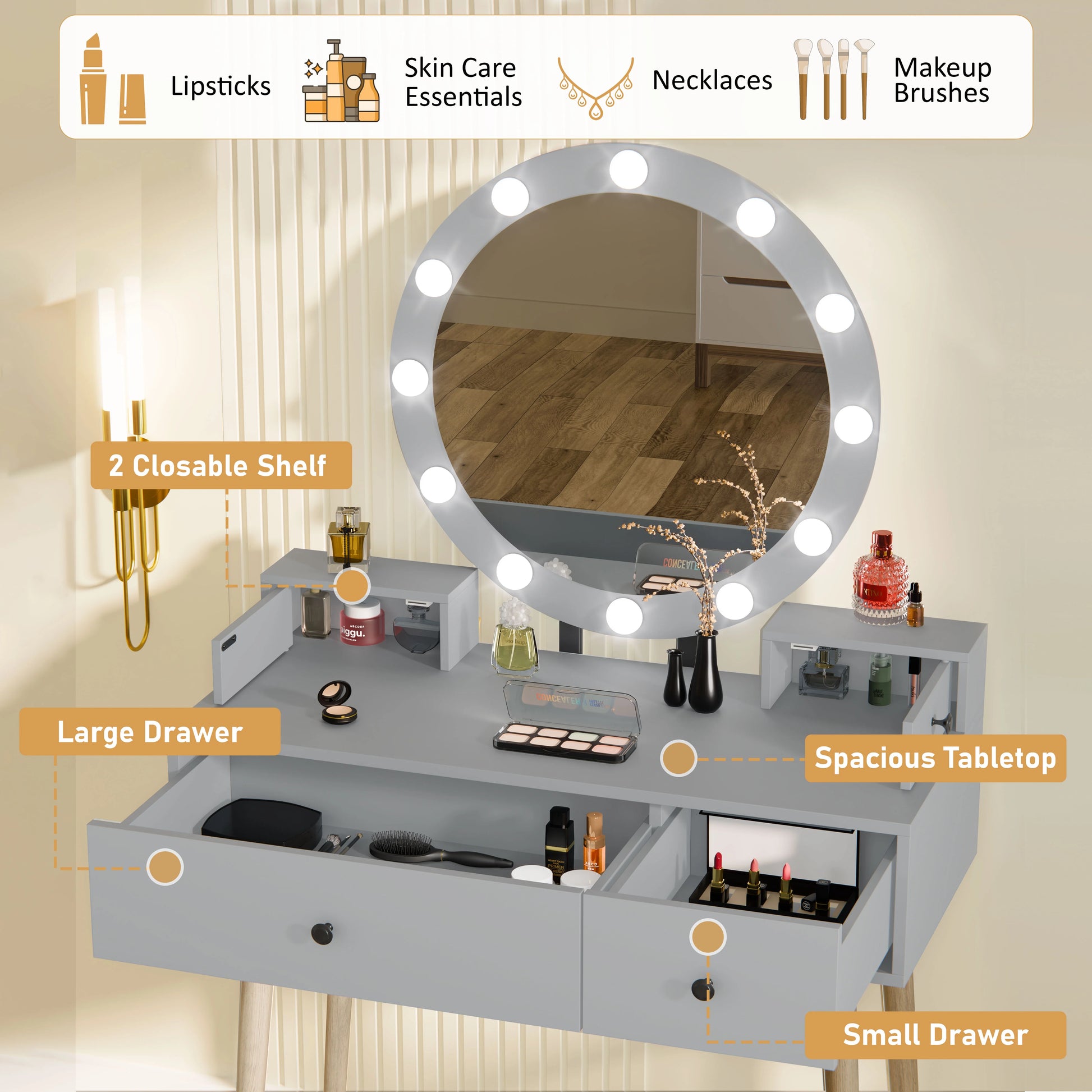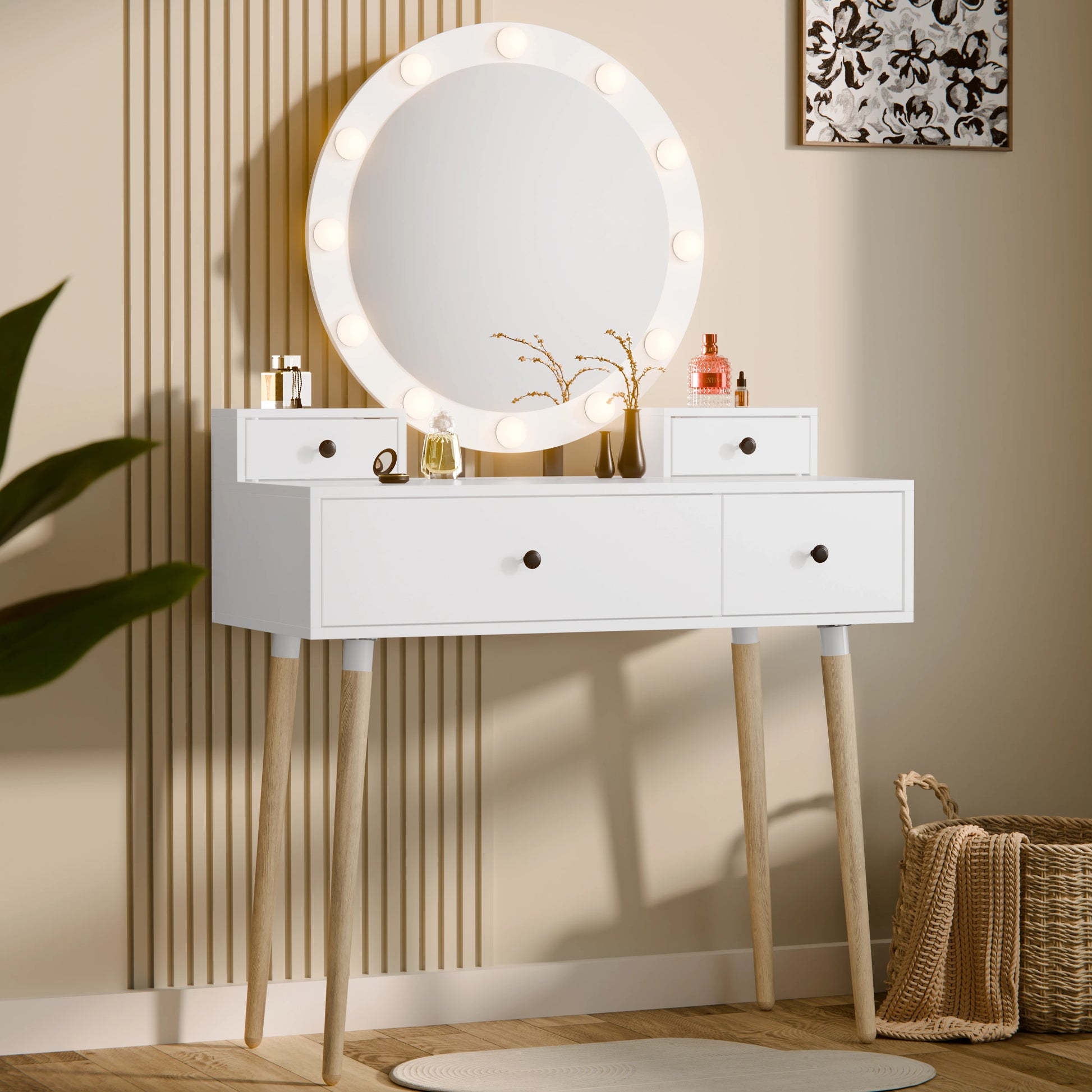 Dressing Table With Drawers and Hollywood Mirror Makeup...