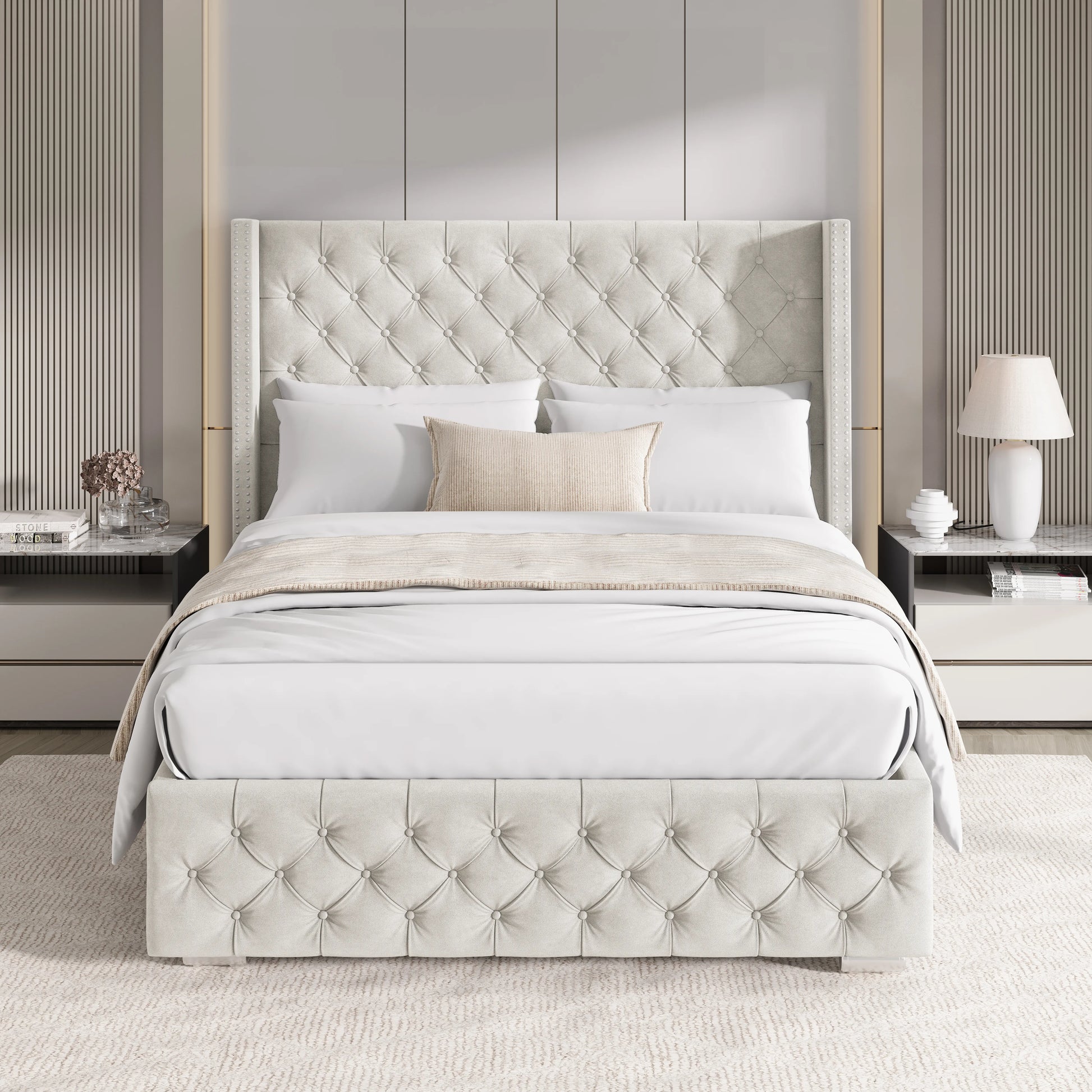 Cross Pattern Velvet Ottoman Storage Bed - Winged...